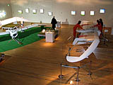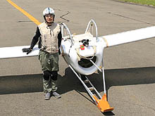 八谷和彦氏は,電子メールソフト「ポストペット」を世に送り出したことで有名なメディアクリエイターだが,同時に「発明系アーティスト」としてもよく知られた人だ。2001年から2003年にかけては,映画「バック・トゥ・ザ・フューチャー PART2」に出てきた空飛ぶスケボーをモチーフにした「エアボード」(Air Board)を製作し,また2001年からは今回の展覧会のテーマでもある「Open Sky」プロジェクトを開始している。 このOpen Skyは,個人が“飛行機”を自作して空を飛ぶことができるか? できそうだからやってみようというプロジェクトで,最終的にはジェットエンジンを搭載した自作飛行機で大空を自由に飛び回ることを目的としている。2003年には検証用の2分の1サイズのジェットエンジン搭載模型のラジコン飛行に成功し,2004年には最終モデルの5分の1の模型を製作して,各種シミュレーションを行っている。ここまでがプロジェクトのフェーズ1に当たるそうだ。 続くフェーズ2では,人が乗って飛行できる「M-02」を製作。エンジンなしのゴム牽引による試験飛行を60回以上繰り返し,さまざまな調整を行っている。そして,3年がかりのプロジェクトも,いよいよ2007年からフェーズ3に入り,夏頃までには実際にジェットエンジンを搭載した機体が飛ぶ予定なのである。 自作飛行機で空を飛ぶという,ちょっと聞いただけでは「マジすか?」と言いたくなるOpen Skyプロジェクトだが,こうして一歩一歩着実に進歩している様子を見ると,やれるかも,という気になってくるから不思議だ。展覧会では,各フェーズで作られた機体(「愛・地球博」に展示された「M-01」は,分解されて「M-02」の材料になっているので存在しないが)と,それぞれの飛行の様子を映したビデオ映像が展示されているので,一抹の疑いを拭いきれない人はぜひ自分の目で確認してほしい。