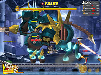 プレイヤーが操る王女およびそのほかのキャラクターは,その特性に応じてさまざまな武器や技を使う。火縄銃やリボルバー拳銃,軍用ライフル,熱源追尾ミサイルやら手榴弾やらと,いかにも武器然としたもののほかにも,前述のぬいぐるみ「ミル」を振り回しての接近戦や,各種のパンチ/キックなどが,キャラクターの種類に応じて使える。