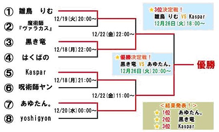 1位 あゆたん。  2位 黒き竜  3位 Kaspar
