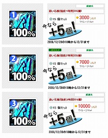 このキャンペーンは,12月28日6:00PMから12月31日11:59PMまで実施される。その内容は,期間中に「ブライトキングダム」ショッピングモールで販売中の有料アイテム「蒼い石版100% 強度1/2/3 専用」15 個セットを購入すると,さらに5個付いてくるというものだ。 「蒼い石版100%強度1/2/3 専用」は,アイテムの鍛錬に失敗しても,装備品がグレードダウンしないというアイテムだ。購入を考えている人は,キャンペーン開始までちょっとだけ待ってみよう。(oNo)