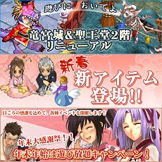 本日のアップデートにて「竜宮城」と「聖王堂」が大幅にリニューアルします。「竜宮城」は1階、2階共に完全一新となりまして、最奥の宴会場も雰囲気が変わり広くなりました。「聖王堂」については2階のみの拡張となりますが、大幅に広くなりましたのでモンスター狩りが大変快適にできるようになっています。 「竜宮城」や「聖王堂」に行ってみることで、新年のお参りと同じ気分が味わうことができるかもしれません。
