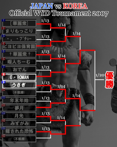 ■今後の日程 2007 年1 月20 日(土) 「日本最強決定 天上対戦」決勝 ,3 位決定戦(オンライン対戦) 2007 年2 月3 日(土) 「日本VS 韓国 最強WYD 決定戦」 (オンライン又は韓国ソウル市特設会場)