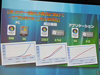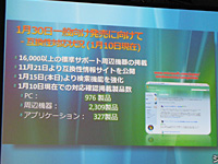 ジェイミソン氏は,ドライバサポート状況のよさもアピールする。Windows XPの発売2週間前と比べて,対応デバイスの数は1.5倍(50%増し)になっており,ロゴ取得済みデバイス&アプリケーションの数も増えているとした