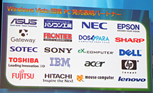 Windows Vista搭載PCの発売を表明しているパートナー一覧