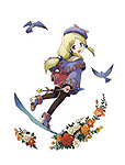 ○グラフィックス パッと見は2Dグラフィックスのようだが,実際は3Dで描かれている。3D空間の中に,手描き調の2Dイラストを配置するという特殊な方式を採用しており,空間的な広がりを実現しつつも,まるでイラストの中を歩いているような,独特の童話的な雰囲気が再現されている。季節や時間の移ろい,波の効果など,「常に動き続ける世界」も意識されている。