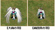 ○ 稲穂ちゃん賞 (2名)※巨商伝ゲームアカウントを持っている応募者を対象に設置された賞です。 【賞品】 巨商伝キャラクターに羽を追加 羽 … このイラストコンテスト用に特別に実装されるアイテムで、受賞者の所属する商団に対して付与され、大商が大きい羽、その他の団員は小さい羽を装備することができるようになります。