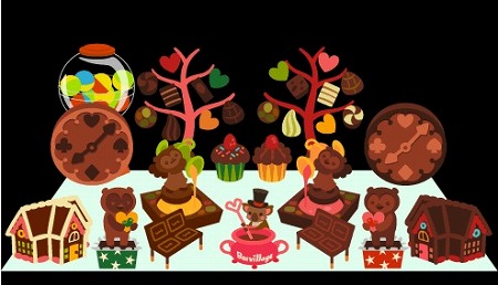 「HEARTBEAR(ハートベア)」や、ぐるぐると回ってチョコレートを作る「CHOCOLATEMACHINE(チョコレートマシーン)」など今にも甘い匂いが漂ってきそうなバレンタインアイテムが再登場いたしました。