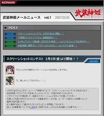 コナミデジタルエンタテインメントは,フィギュア連動型オンラインゲーム「武装神姫」で,“スクリーンショットコンテスト”を2月2日2:00PMから開催する。また,2月5日から「武装神姫メールニュース」の配信が開始される。