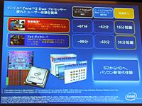 会場で示されたスライドより。2007年前半ということで,パフォーマンスベンチマークの主役はCore 2 Duoになっている