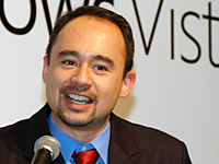 左:マイクロソフトの執行役常務 ビジネス&マーケティング担当である佐分利ユージン氏は,Windows Vistaの反響が予想以上によく,単体製品や搭載PCの売れ行き“初速”はたいへん好調と述べる。「日本ではHome PremiumとUltimateが売り上げの大半。日本における立ち上がりは世界でもトップクラスだったのではないか」という