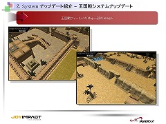 なお,王国戦に参加して,他国の王国騎士を倒すと,名誉点数などの報酬が得られるとのこと。名誉点数を消費し,特殊なアイテムが得られる構想もあるようなので,参加するメリットは大きいといえるだろう。 さらに,王国戦に勝利した陣営には,ドロップ率アップおよび追加報酬などの恩恵が施され,王国祭壇を占領したギルドマスターには,国王としての権限が与えられるという。今後の情報公開が,実に楽しみなシステムである。