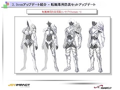 アイテム関連のアップデートでは,転職専用防具セットの導入に注目が集まりそうだ。現状,デザインコンセプトや原画のみの情報公開となっているが,キャラクターの個性を表現するために,いつかはぜひ入手したいアイテムである。
