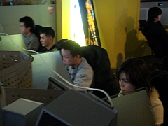日韓戦の舞台となるPCバン,メガウェブステーション麻浦区役所店では,当日,韓国Hanbit Soft主催のWYD2オフラインイベントが開催されていた。これには,韓国内で行われたWYD2対人戦イベントの8強を含む,50人以上のプレイヤーが集まっており,約50席のプレイスペースがある会場内は,異様な熱気に包まれていた。 そのメインイベントに相当する日韓戦は,韓国のWYD2プレイヤーからもかなり注目されていたようで,E・ROMANチームが会場入りすると,周囲はさらなる熱気とざわめきに包まれたものだ。