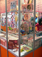 古くからPCゲームを手がけてきただけあって,UserJoy Technologyの製品ラインナップは極めて広い。「幻想三国誌」や「絶代双橋」といった,代を重ねたシリーズ作品のパッケージがあり,その関連グッズも数多い。そうしたものをメーカー自ら販売するコーナーが,ブースの外縁部でコの字形に展開されている。