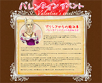 これは,敵国に所属するプレイヤーキャラクターを倒すともらえるアイテム,「チョコ」を集めるというイベント。集めたチョコの数によって,イベント限定の「プリシアの気持ち」「恋の切れ端」「義理チョコリング」などと交換可能だ。各アイテムの効果は明かされていないが,「義理チョコリング」は装備すると,2月28日の定期メンテナンスまで能力が上がるとのこと。 ちなみに,限定アイテムは,チョコ20個,250個,1000個と交換でき,250個の場合は「恋の切れ端」が必ずもらえるのだが,それ以外の場合は,もらえるアイテムがランダムで決まるという。交換方法に性格が出そうなイベントだ。(noguchi)