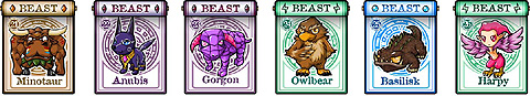 召喚獣「BEAST」クラスの「ミノタウロス」「アヌビス」「ゴルゴン」「オウルベア」「バシリスク」「ハーピー」