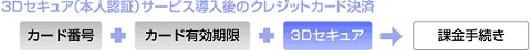 クレジットカードをご利用いただくご本人様があらかじめクレジットカード各社のサイトにてパスワードを設定しておくことにより、カード番号とカード名義人、有効期限を不正に知りえた第三者が「なりすまし」でクレジットカード決済をすることが非常に困難になるサービスです。
