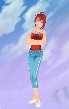 ■アイテム一例 ●モモカ モモカプリントシャツ(緑)加速度+3 値段:2800GP ●フィ ホルダーネックセーター(赤)スピード+3 値段:3200GP ●レイ ファイヤーパターンシャツ(ピンク)スピード+3 値段:3000GP ●ナジャ カラービスチェ(赤)スピード+3 値段:3200GP