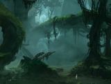 また,今回はMHFオリジナルのフィールドのイメージイラストを入手したので,公開しておこう。新しい狩猟場は木々がうっそうと生い茂る秘境で,イラストでは湖や樹上に建てられた小屋などを視認できる。また,生えている木はかなり巨大なことも,3枚め/4枚めのイラストから確認できる。登場するモンスターやクエストなどは明らかにされていないが,4Gamerでは情報を入手しだい続報をお届けする予定だ。