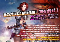[URL])」にて、春のPVPイベント 第1回 「最強伝説?! GMを倒せ!」を開催いたします。