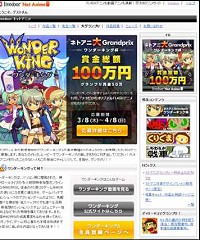 [URL])は、オンラインRPG(ロールプレイングゲーム)「ワンダーキング」の上半期の本格稼動に伴い、株式会社ライブドア(livedoor Net Anime)との共同企画として、「ワンダーキング」キャラクターを使用したネットアニメ 『ネトアニ大グランプリ「ワンダーキング杯」』 の作品募集を本日、3月8日(木)から随時受け付け開始いたします。