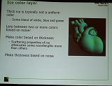さて,この講演は,先の記事で紹介した,AMDのプロシージャルに対する取り組みの具体例といった位置付けとなっている。その一つは,雪や氷の表現を自動化するというもので,もう一つはさまざまな自動生成ツールをまとめたミドルウェア「ProFX」の概要だ。雪や氷の表現の自動化に関しては,下記にスライドを紹介するにとどめ,以降,ProFXのほうを紹介していこう。
