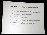 普段プレイしているゲームの“開発苦労話”を聞くのは楽しい。プレイ中には意識もしないようなシーンの一つ一つに,それなりの努力や苦労があったという事実は,別に知らなくても困らないが,知っているとNHKの「プロジェクトX」を見たような気分になれる。GDCは,そういう話を聞けるおそらく世界最大のイベントであり,3月7日に行われた「The Challenge of Designing a First Person Melee Combat Game」も,そんな講演の一つなのだ。