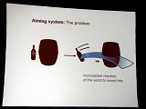 FPSでは,レティクル(照準)をターゲットに合わせてトリガーを引けば,弾丸が直線的にターゲットに向かっていく。しかし斬り合いでは,剣は弧を描くような軌跡になるため,そうはいかない。