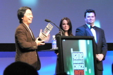 ゲーム業界の功労者に贈られるLifetime Achievement賞に輝いたのは,日本が誇るクリエイター,宮本茂氏である。この日,宮本氏は大活躍で,Innovation賞とGame Design賞の二冠となったWii Sportsの受賞でも登壇しており,観客の前に出るのはこのLifetime Achievement賞のときで3度め。しかし個人に向けた賞のためか,前2回以上に,会場が割れんばかりの大きな拍手で迎えられた。見渡す限りすべての観客が,スタンディングオベーションで氏を称えていたのが印象的だった。