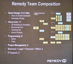ツールも自社で開発するため,プログラマーの比重が高いのが特徴のようだ。ちなみに,レベルエディタを一人募集中である以外は,Max Payneを開発していた頃と大きく変わらない陣容で,今後も人数を大幅に増やす予定はないという。つまり,1チーム1プロジェクト体制を,継続していくということなのだろう。