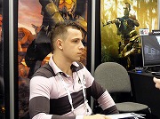 デモプレイと説明を行ってくれたPiotr Prokop氏。ちなみに,Techlandのあるポーランドからは,飛行機を乗り継いで20時間もかけて来たとのこと