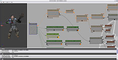 Unreal Engine 3.0は,言ってみればすでに完成されたテクノロジーであり,今後は利用者やライセンス先の要望に応じてマイナーな変更を続けていくとは言うものの,大枠で以前のテクノロジーデモ段階から変化していない。ノードを線で結ぶことでテクスチャの重なり具合が目で確認できるといった仕様が最大の特徴ともいえるが,そのシステムはアニメーションやプロダクションマップなどのツールにも幅広く利用されているようだ。