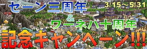 ☆ゼーン三周年&ワーネバ十周年記念キャンペーン のお知らせ☆