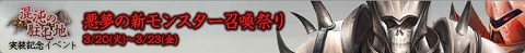 ■混沌の駐屯地モンスターお披露目イベント「悪夢の新モンスター召喚祭り」 「混沌の駐屯地」実装を記念して、新しく追加された7体のモンスターお披露目イベントを開催いたします。