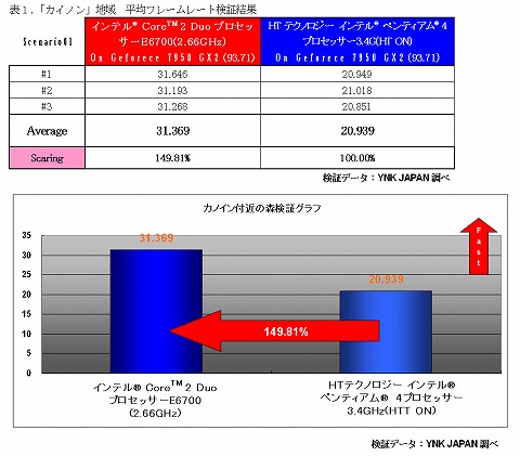 <以下,メーカー発表文の内容をそのまま掲載しています> 次世代MMORPG R.O.H.A.N インテル新世代技術との運命的な出会い インテルR CoreTM 2 Duo プロセッサー環境で検証 株式会社YNK JAPAN(ワイエヌケージャパン、代表取締役:パク・キウォン)は、当社で運営するMMORPG(多人数接続型オンラインロールプレイングゲーム)「Renaissance of Human and Nature(R.O.H.A.N、ロ・ハ・ン、 [URL])」について、「インテル R Core TM 2 Duo プロセッサー」に最適化に伴う作業を終了し、検証の結果、無事に作業が終了したことを確認した。 YNK JAPANは3月22日付で技術チームの検証結果により「R.O.H.A.N」プレイ環境において、「インテル R Core TM 2 Duo プロセッサー」が技術的に最適化され、より最適にプレイできることを確認した。 これによりYNKJAPANは近日「ROHAN」公式サイト [URL]下段及びゲーム内にて「インテル R Core TM 2 Duo プロセッサー」の「Identifier ロゴ」を表記する予定だ。 これを通じYNKJAPANは増加するインテル R Core TM 2 Duoプロセッサー搭載パソコン使用ユーザーへ、より安定したプレイ環境が保障できるということを公式的に表明する予定だ。 検証テストは「R.O.H.A.N」プレイ地域中、グラフィックオブジェクトが一番多い「カイノン」地域にて、最大解像度である「1920X1200 32bit」に、すべてのグラフィックオプションを最大値で設定した状態で行なわれた。 検証テストの結果、HTテクノロジー インテル R ペンティアム R 4プロセッサーでは3.4GHzは平均 20.939Flame/secだったのに比べ、インテル R Core TM 2 DuoプロセッサーE6700(2.66GHz)では 31.369Flame/secで約150%の向上を確認できた。