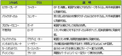 ※再利用時間や、消費EPなどの仕様は現状の仕様と同様となります。 【追加スキル】
