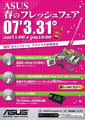ASUSTeK Computer Inc.(以下、ASUS)は2007年3月31日に、「ASUS春のフレッシュフェア」イベントを秋葉原の「カフェソラーレ リナックスカフェ秋葉原店」にて開催いたします。