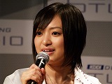 タイアップタイトルの紹介が終わると,KDDI コンテンツ・メディア事業本部 コンテンツ・EC本部 コンテンツ推進部長 竹之内 剛氏が登壇。今回のアルバムのコンセプトから,80★PAN!の3人を“ゲームの女王”と認定し,ティアラを贈呈すると同時に,auのEZチャンネルで新設されるゲーム専門チャンネルのMCとして彼女達を起用することを発表。そして,もう一つの“何か”を,近日発表することをにおわせた。 KDDIとしては,着うたの配信,EZアプリでのゲーム配信,ひかりoneでのPCオンラインゲーム配信という形で,同社が持つプラットフォームをフル活用して今回のアルバムをバックアップしていくとのこと。 これを受けて小笠原さんは,「次は,LISMOのCMを狙っちゃおうかなと思っています」と宣言。その後,ハドソンの高橋名人から,ゲームの女王の認定証授与も行われた。