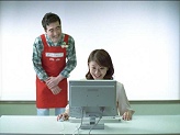 そこへ、背後からゲームショップの店長がやって来て、『ポンッ』と肩を叩き、『テイルズウィーバー』はお店では売っていない事を女子大生に優しく教えてあげます。