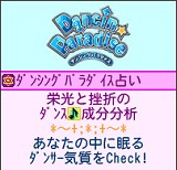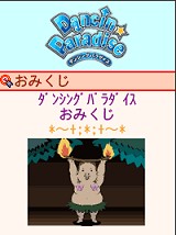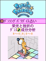 「ダンシングパラダイス」オリジナル占い。入力した名前(ニックネーム)を基に、ダンス成分で分析された占い結果と、PC版『ダンシングパラダイス』でのアバターの為のおススメファッションアイテムが表示されます。