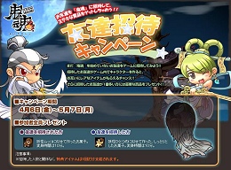■『鬼魂』 友達招待イベント 概要 イベント日程 : 2007年4月6日(金)〜2007年5月17日(木) 上記期間、まだ『鬼魂』をプレイされていない方を招待されたユーザーの方に、様々な賞品が当たる「友達招待イベント」を開催いたします。 この機会に、たくさんの方に鬼魂をプレイしていただきたいと思っております。 ■友達招待イベントとは 「友達招待イベント」専用メール送信フォームからメールを送り、メール受け取った方が『鬼魂』に会員登録をし、キャラクターを作成完了した段階で、招待した方、招待された方の両方に、それぞれ、ゲーム内アイテムを贈らせていただきます。 またそのほかにも、豪華賞品をご用意しております。 ■「最多招待者賞」と「抽選特別賞」について 最も多くお友達を招待された方には「最多招待者賞」をプレゼントさせていただきます。 また、今回のキャンペーンでお友達を招待した方、お友達に招待された方全員の中から抽選で「抽選特別賞」を、プレゼントとしてご用意しております。