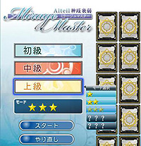 アルテイル神経衰弱『ミラージュマスター』Ver.UP詳細 【実施日程】 2007年4月16日(月)12:00〜 【 内 容 】 その1:アルテイル神経衰弱『ミラージュマスター』のプレイモードが大幅追加!! その2:カード画像拡大&キャラクター解説表示機能追加!!