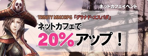 <以下,メーカー発表文の内容をそのまま掲載しています> 永久無料 MMORPG 『グラナド・エスパダ』 ネットカフェでレベルが!スタンスが!なんと20%アップ! 4 月24 日よりネットカフェ限定イベント開催 〜更に!ネットカフェ限定で有料ダンジョンを無料開放!!〜