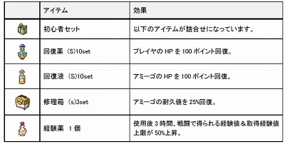 80 ポイントで、アミアミモールにて、初心者セットをご購入いただけます!冒険に役立つアイテムが揃っています。