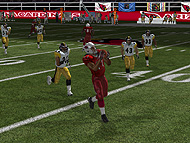 MADDEN NFL 07でプレイヤーは,すべてのポジションの選手を操作可能だ。そして,ボールを運ぶランニングバックの操作時には,ただ走るだけでなく,走る方向を素早く変えるCut Move,左右にステップして相手を惑わすDouble Moves,迫り来るディフェンスを手で払いのけるStiff armなど,多彩なアクションが用意されており,アクション性がかなり高い。 また,PlayBookからそのときのシチュエーションに合った作戦を選ぶだけでなく,自分で作戦を作ることもでき,アメフトの持つさまざまな要素が,ゲームにほぼすべて収められている。さらに,繰り返して同じプレイを見られる機能などもあり,試合観戦とうまく併用すれば,ルールを覚えるときにかなり役立つだろう。