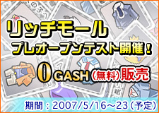 ■リッチモール(アイテムモール) プレ・オープン テスト開催 について ネットdeすごろく『す〜ぱぁ★リッチ』をより楽しく、より有利にプレイしていただくにあたり、『す〜ぱぁ★リッチ』のアイテムモール「リッチモール」のプレ・オープンテストが開催されます。 プレ・オープン期間中は0 GASHで販売テストとなるため、『す〜ぱぁ★リッチ』のゲームアカウントを持っている方であれば誰でも購入テストを行うことができます。 ▼開催期間 2007年5月16日 水曜日 〜 2007年5月23日 水曜日 予定 ▼リッチモール設置場所 『す〜ぱぁ★リッチ』公式サイト内 リッチモール ページ ▼内容 一部アバターアイテムを、 0GASH でテスト販売します。 ※プレ・オープンテストでは、一部アイテムのみに限定してテストを行います。