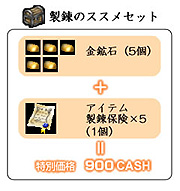 【通常販売】 「アイテム製錬保険×1」 100CASH 「アイテム製錬保険×5」 450CASH 「アイテム製錬保険×10」 850CASH