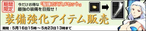 ■販売終了日時:期間限定セットアイテムに限り、5月23日(水)13:00までの販売となります。 ※「アイテム製錬保険×1」「アイテム製錬保険×5」「アイテム製錬保険×10」は、セット販売終了後も引き続きご購入頂けます。