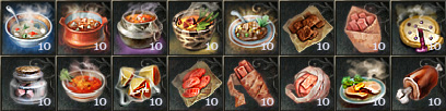 ■料理システム ハンティングシステムにて手に入れたモンスターからの戦利品を食材として活用し専用に有利な効果をもたらすアイテムを作り出すことの出来るシステムです。能力の高い料理になるほど高級な食材が必要になる為、入手には困難を極めます。
