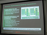 なお,現行のモバイル向けチップセット「AMD M690」で導入された「バッテリー駆動時は内蔵グラフィックスを利用してバッテリー駆動時間を最大化し,ACアダプタ給電時は(ノートPC内部にある)外部GPUを利用することで,パフォーマンスを最大化する」機能「PowerXpress」に関して,RS780Mでもサポートされる旨が明らかにされ,さらに踏み込んだ説明がなされた。 PowerXpressと似たような機能は,国内で販売されているノートPCですでに実装されているが,既存のノートPCでは,切り替え時にシステムの再起動が必要と指摘した福井氏によると,「PowerXpressでは,フレームバッファ内にあるデータの移動に必要な時間くらいしか,切り替え時間はかからない。最終的には,ユーザーが体感できないレベルに持って行きたい」とのことだった。